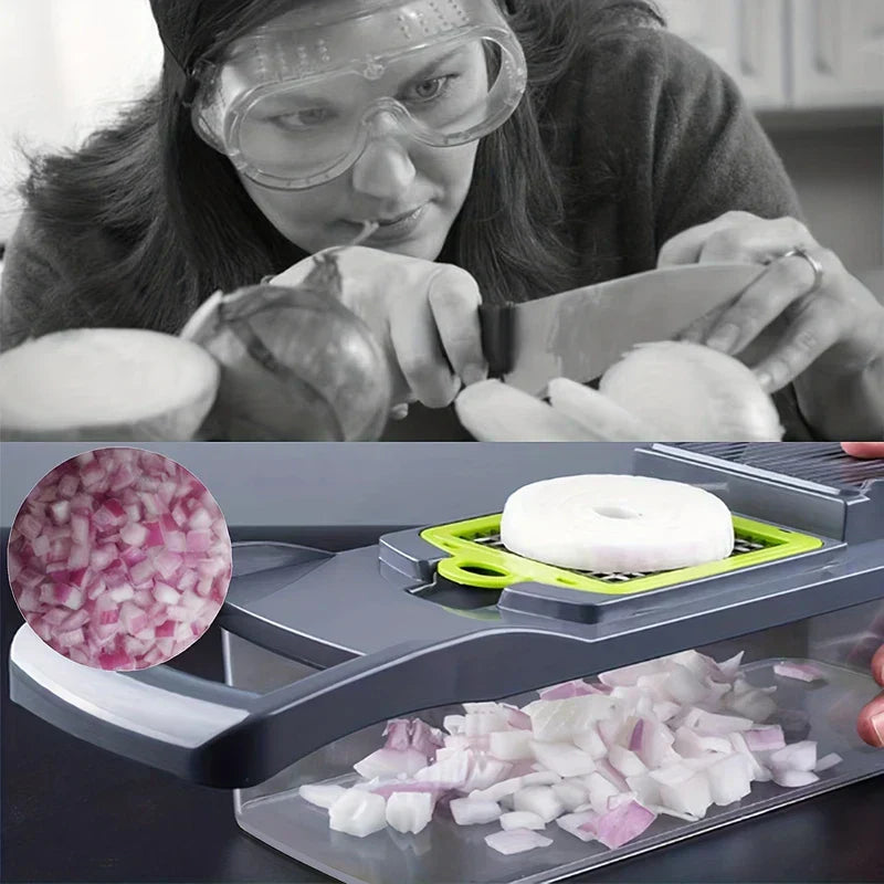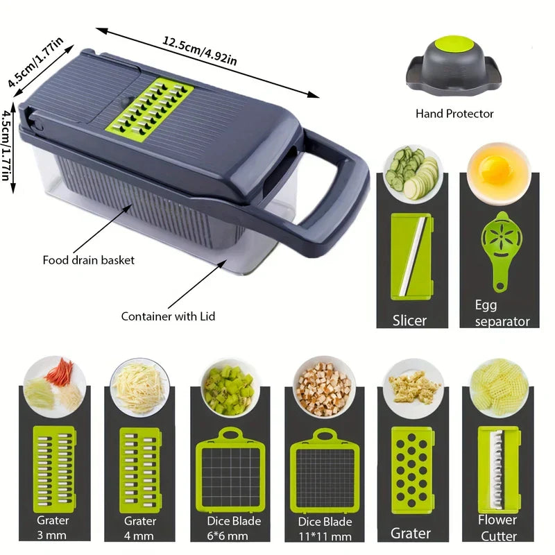 This versatile 8-in-1 Mandoline Slicer Vegetable Chopper Set handles slicing, dicing, grating, and more. Speeds up food prep significantly. A multi-functional tool from New Home Goods.