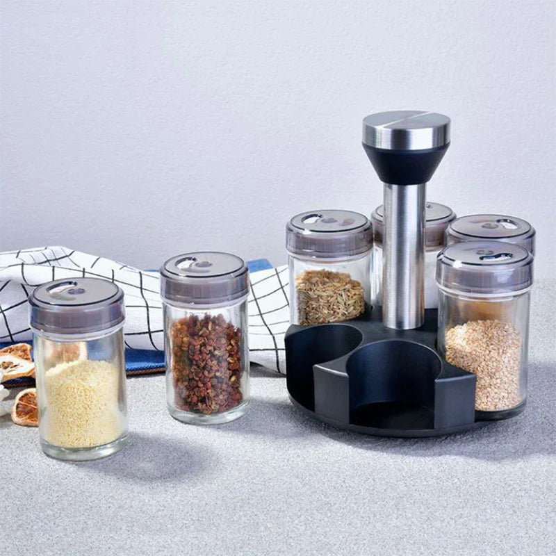 Organize spices efficiently and accessibly using this space-saving 2-in-1 Rotating Spice Rack Organizer, potentially featuring multiple tiers or functions. From New Home Goods.