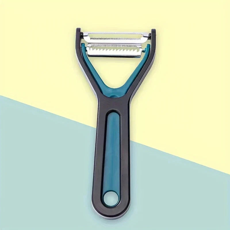 Get versatile peeling options with this 2-in-1 Swivel Vegetable Peeler. Likely features two different blade types (e.g., straight, julienne) on a swivel head. From New Home Goods.
