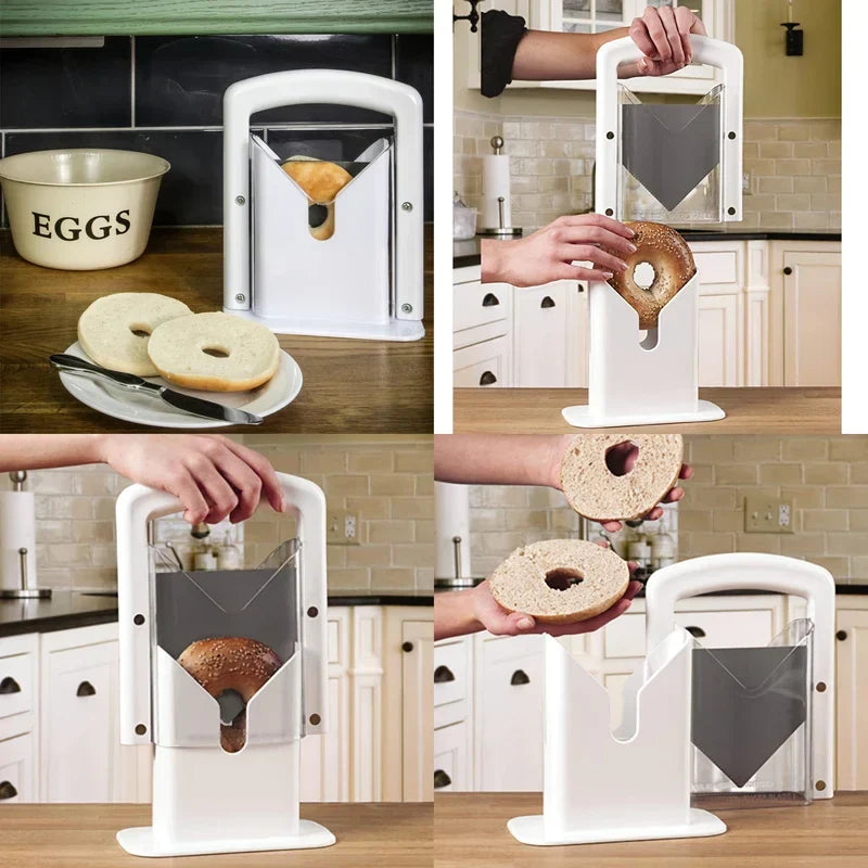 Slice bread, loaves, or bagels uniformly to desired thickness using this Adjustable Bread Loaf Bagel Slicer Guide. Provides guide for consistent slicing. From New Home Goods.