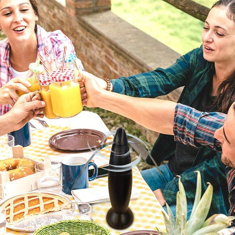 Keep flies away naturally with this Bullet Shape Fly Repellent Fan Device. Uses spinning blades to deter flies without chemicals. From New Home Goods.
