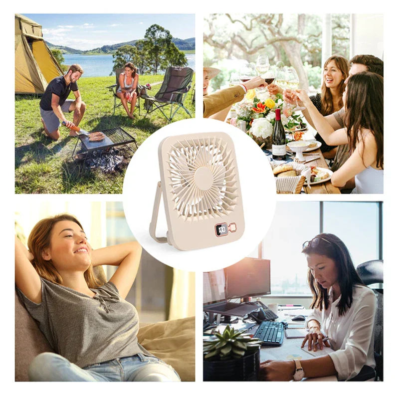 Stay cool and charged with this Desk Fan featuring a Power Bank Function. Provides a cooling breeze while also being able to charge your devices. Offered by New Home Goods.