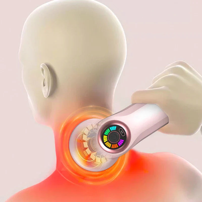 Get deep tissue massage relief with this Handheld Electric Percussion Massager. Uses rapid tapping motions to soothe sore muscles. From New Home Goods.