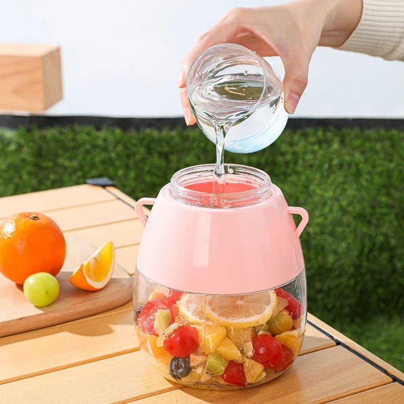 Blend generous portions of smoothies or shakes on the go with this Large Capacity Portable Blender Bottle. Features a bigger blending cup. From New Home Goods.