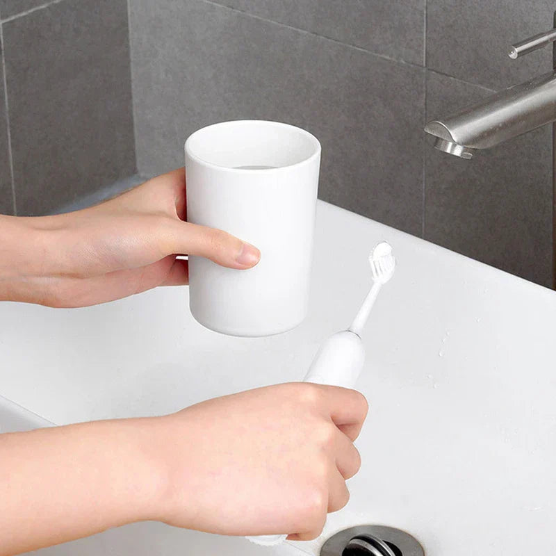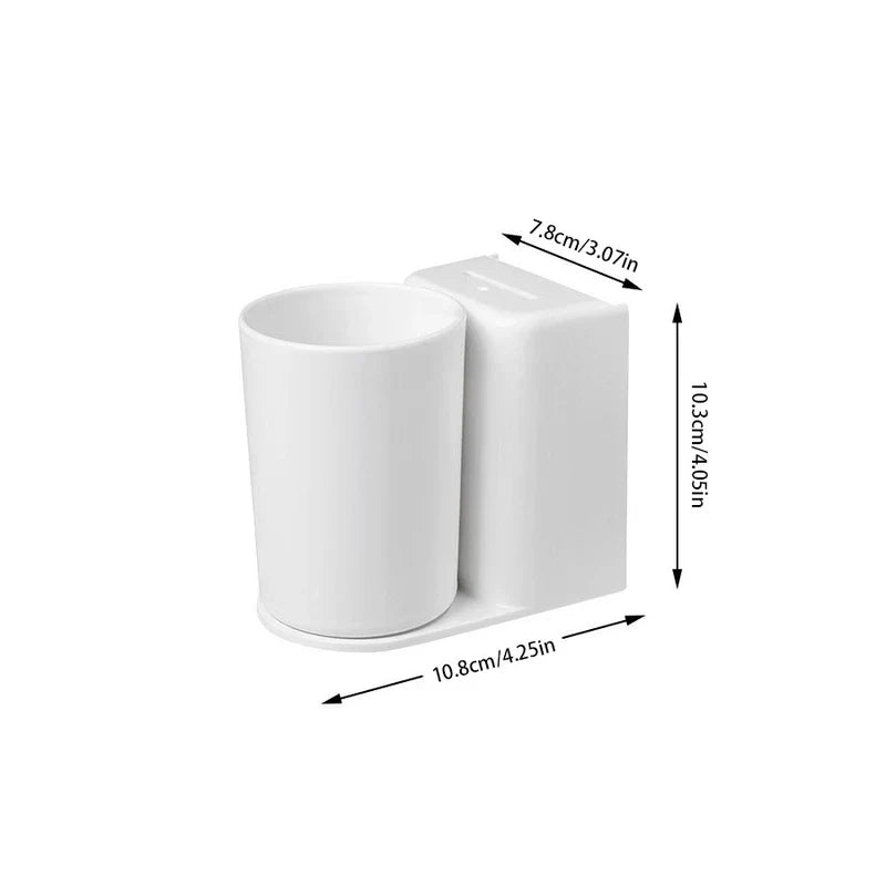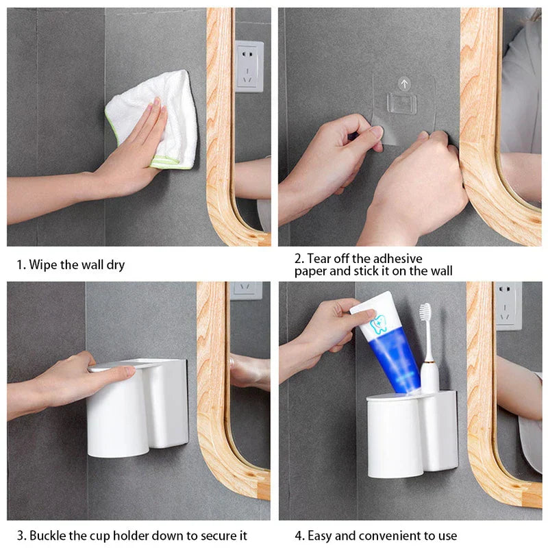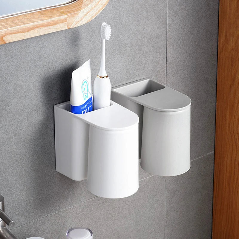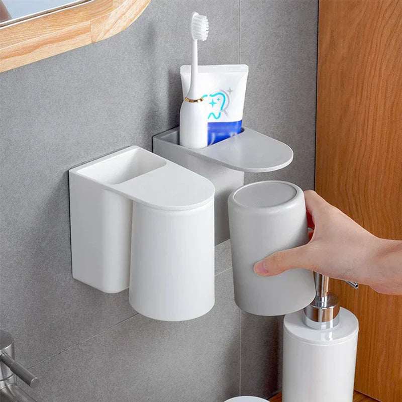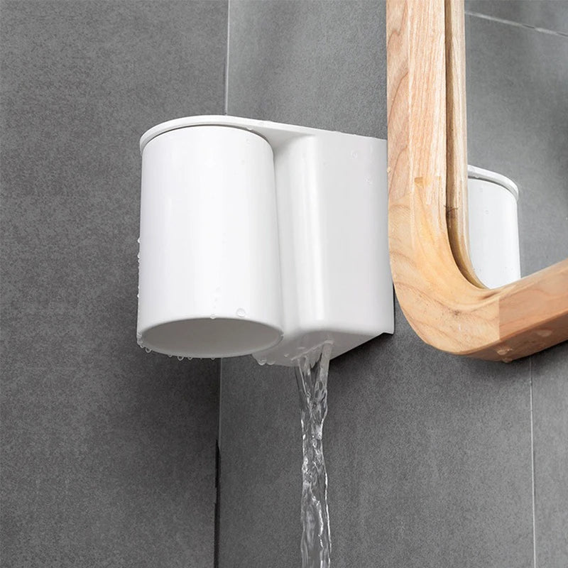 Store toothbrushes hygienically with this Magnetic Inverted Toothbrush Mouthwash Cup Holder. Cups attach magnetically upside down for draining. From New Home Goods.