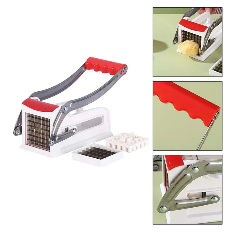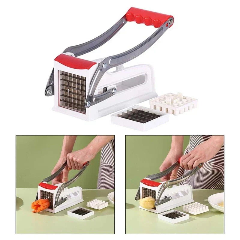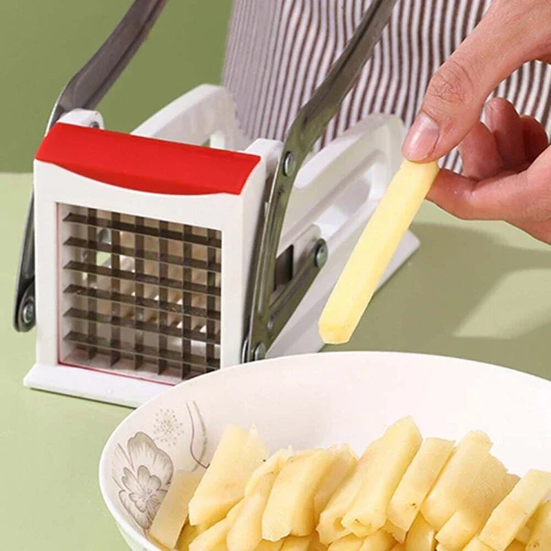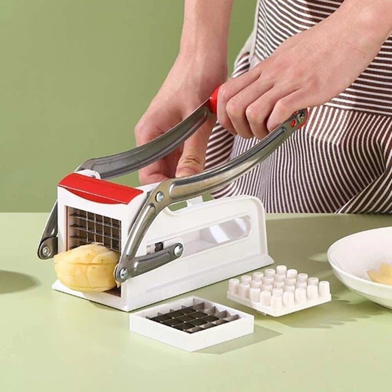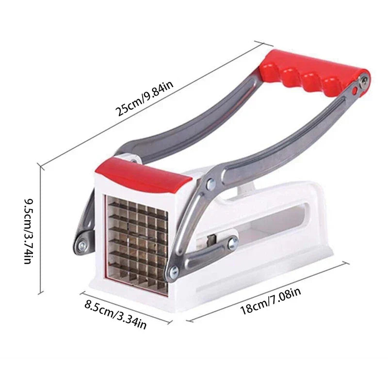 Cut potatoes into perfect french fry shapes easily with this Manual French Fry Potato Cutter. Lever action pushes potatoes through cutting grid. Offered by New Home Goods.