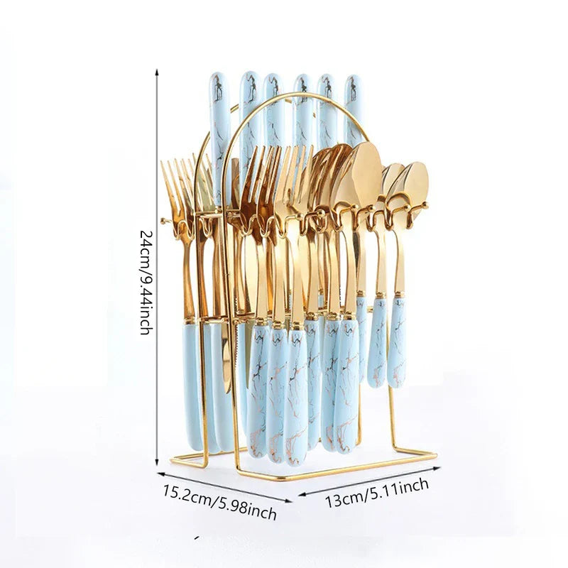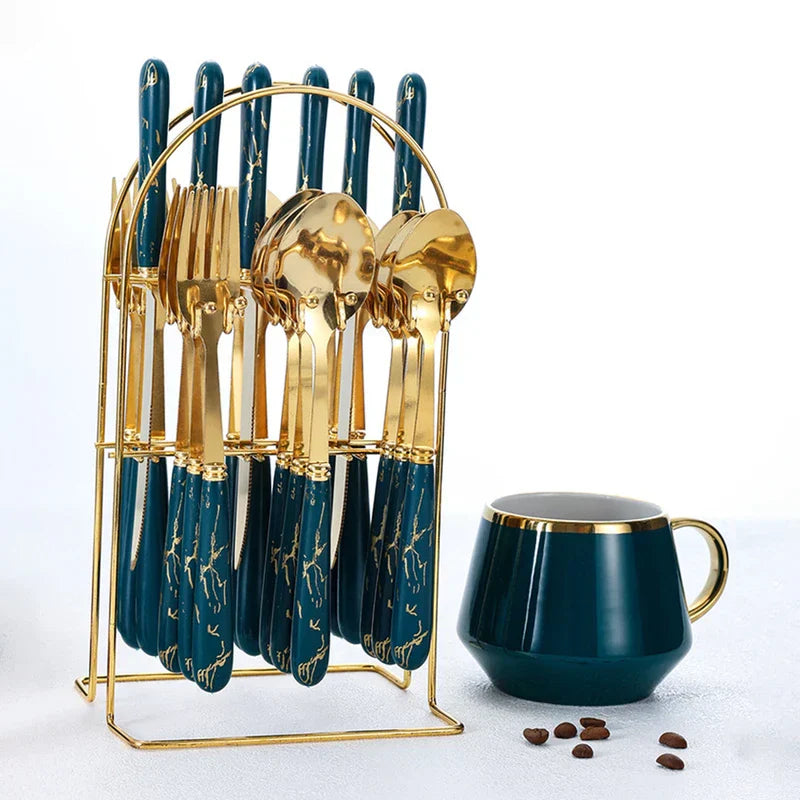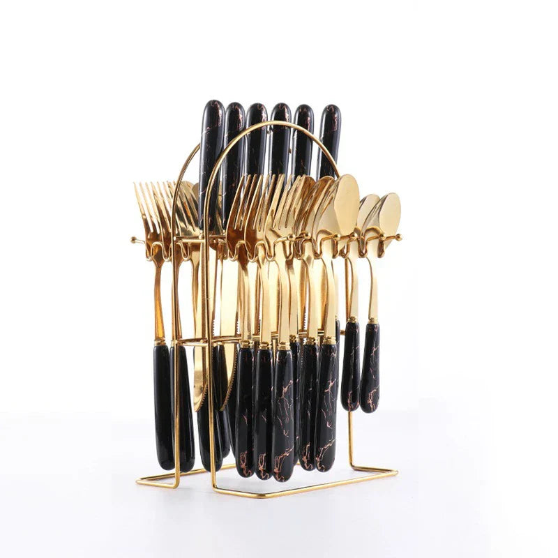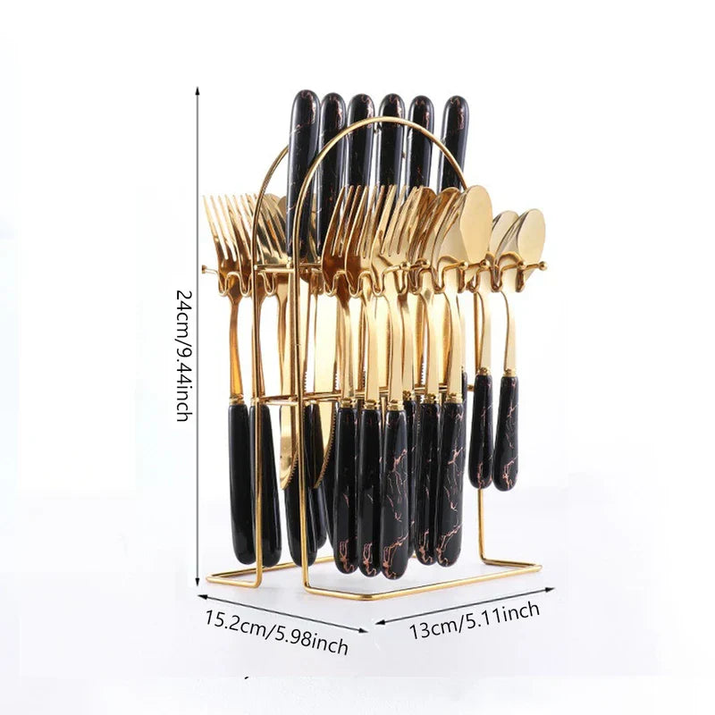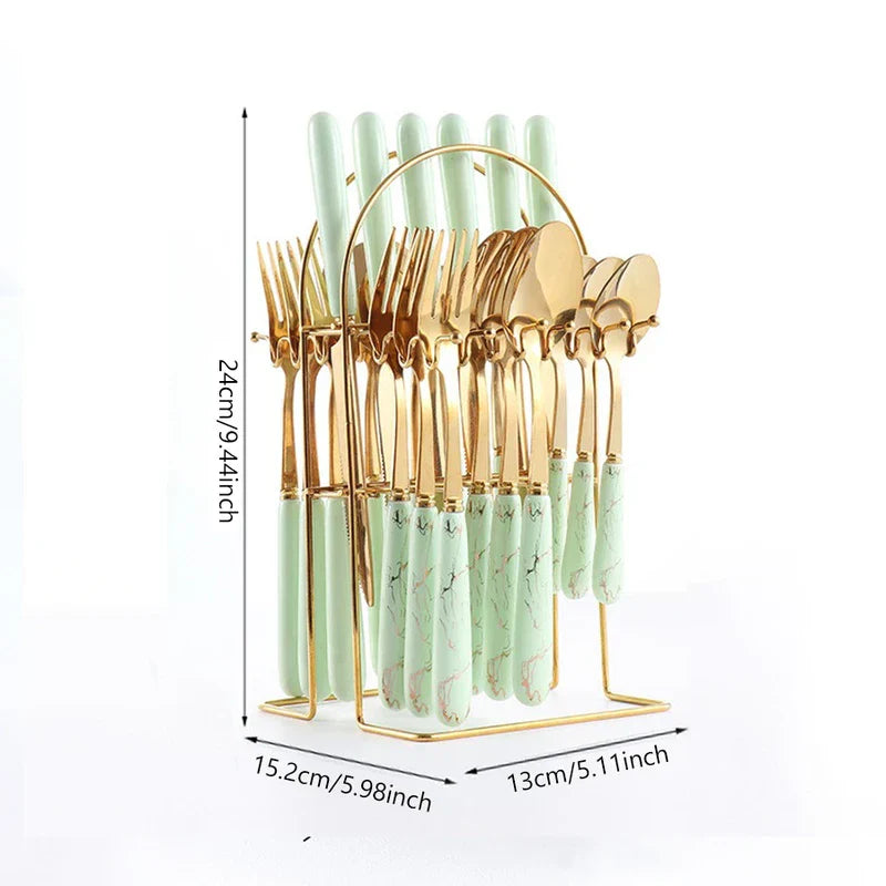 Equip your dining table with this durable 25 Piece Melamine Dinnerware Set. Includes plates, bowls, etc., made from break-resistant melamine. Offered by New Home Goods.