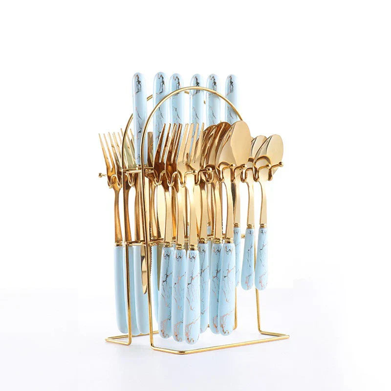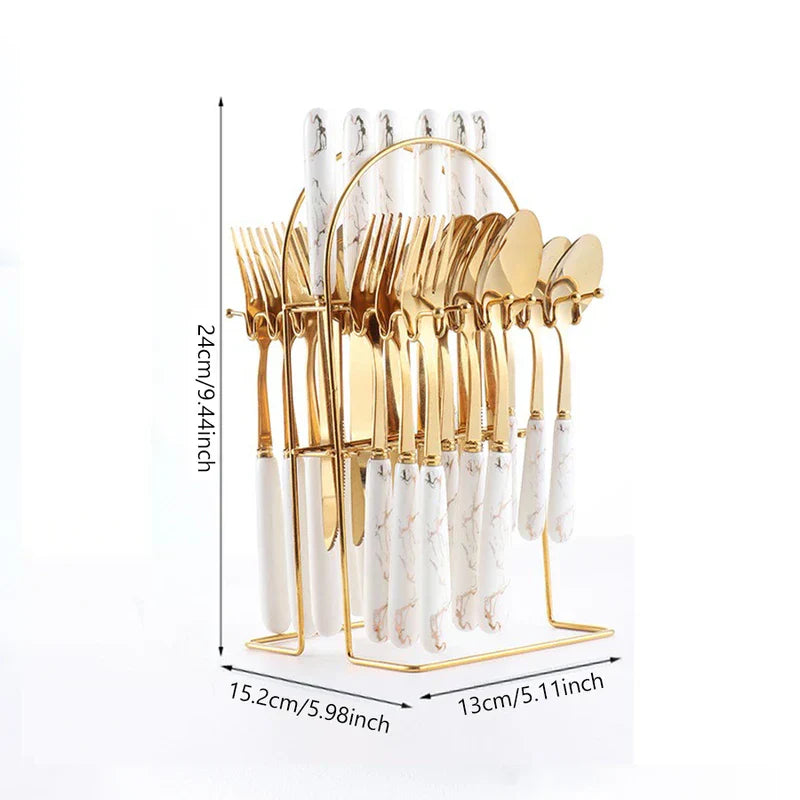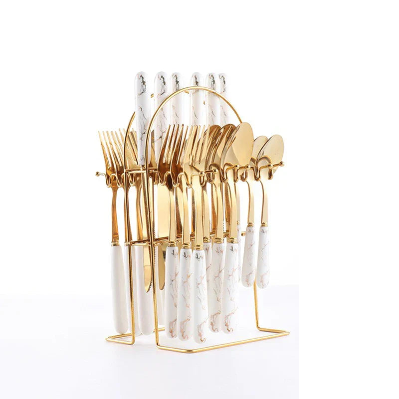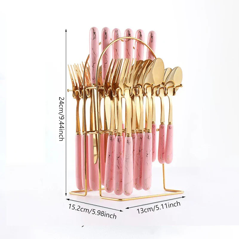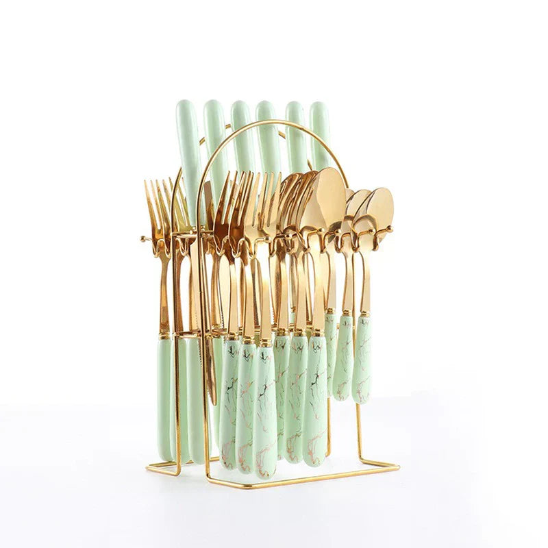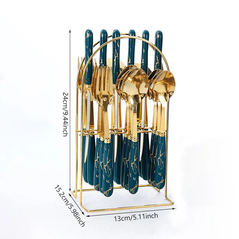 Equip your dining table with this durable 25 Piece Melamine Dinnerware Set. Includes plates, bowls, etc., made from break-resistant melamine. Offered by New Home Goods.