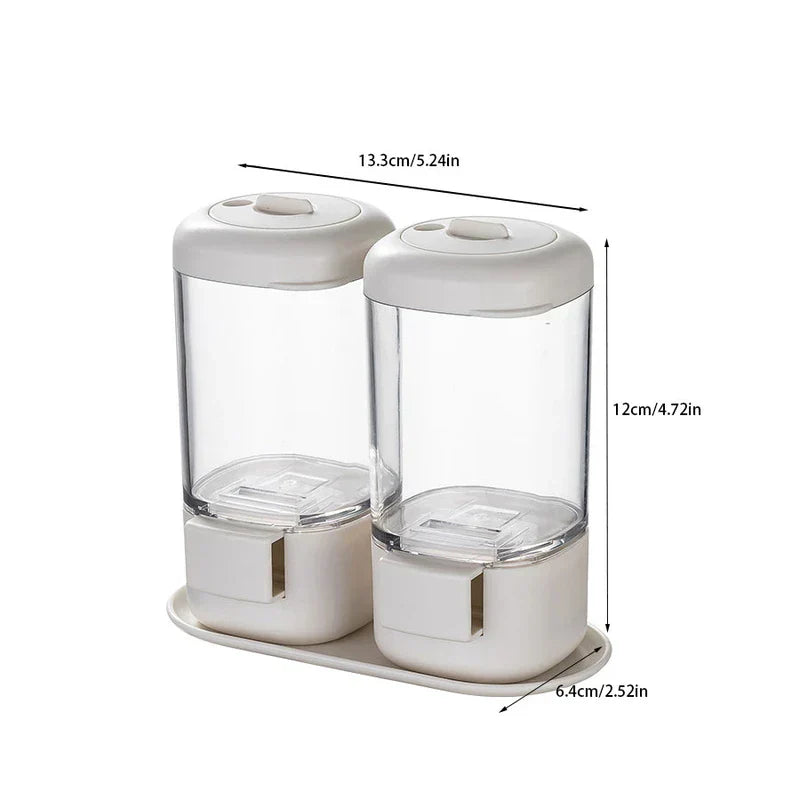 Organize seasonings and control portions with this Quantitative Seasoning Jar Dispenser Set. Includes multiple jars with measured dispensing features. Offered by New Home Goods.