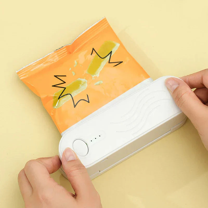Reseal snack bags easily and rechargeably with this Mini Bag Heat Sealer Resealer. USB rechargeable for long-term, portable use. From New Home Goods.