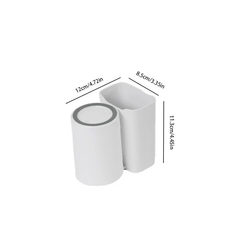 Organize essentials for one person neatly with this Single Toothbrush Mouthwash Cup Holder Set. Compact holder for toothbrush and mouthwash cup. Offered by New Home Goods.