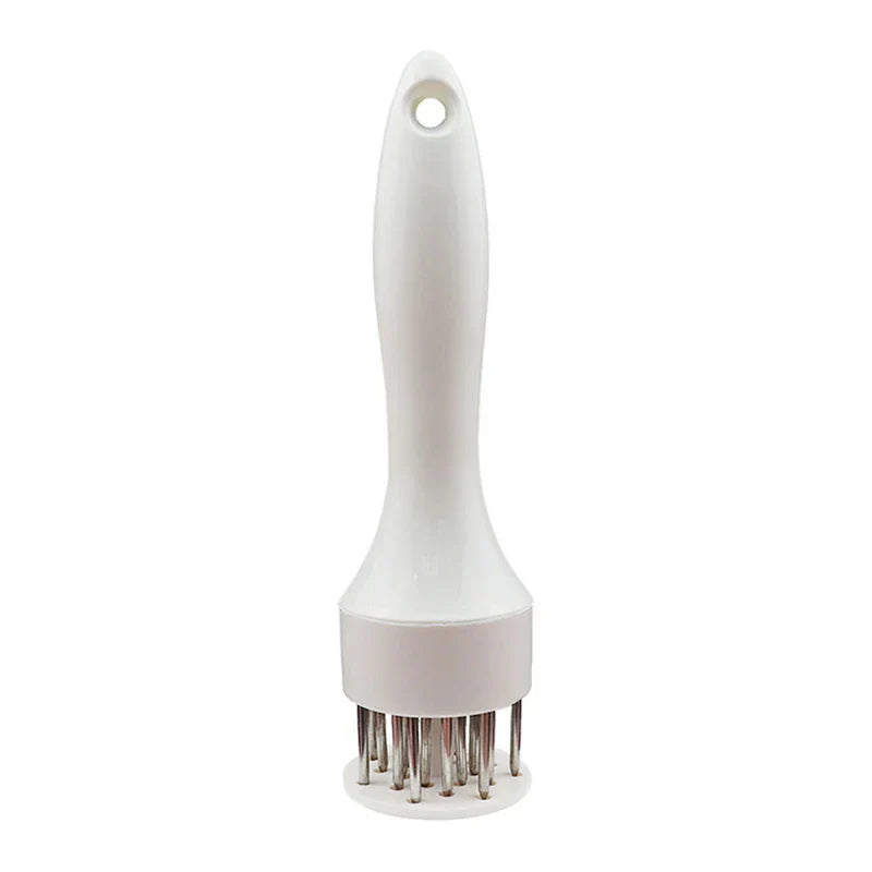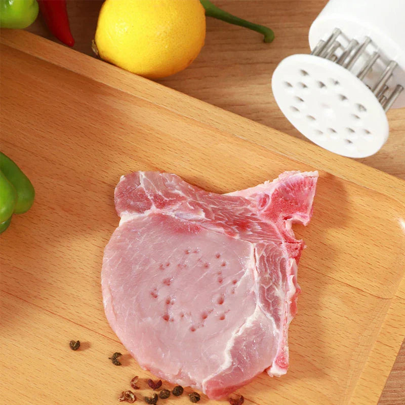 Tenderize meat effectively using this Stainless Steel Meat Tenderizer Tool featuring Needles. Sharp needles penetrate meat to break down fibers. Offered by New Home Goods.