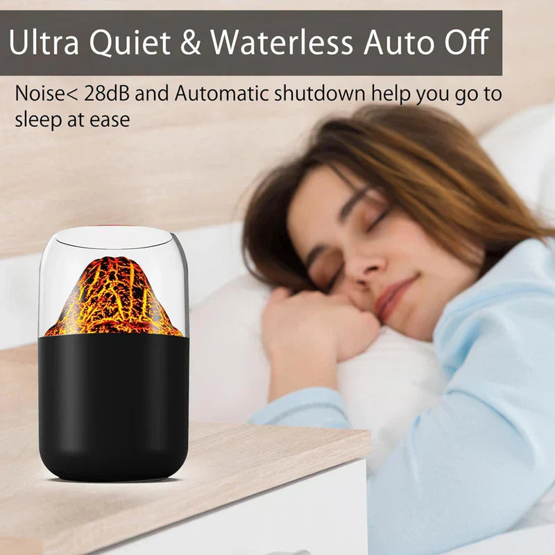 Create a dramatic volcanic ambiance with this Volcano Flame Effect Aroma Diffuser Humidifier. Simulates erupting lava effect with mist and light. From New Home Goods.