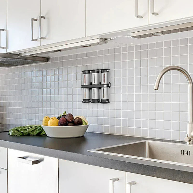 Organize spices conveniently using this Wall Mount Magnetic Spice Rack Shelf. Magnetic surface holds spice tins or jars securely on the wall. From New Home Goods.